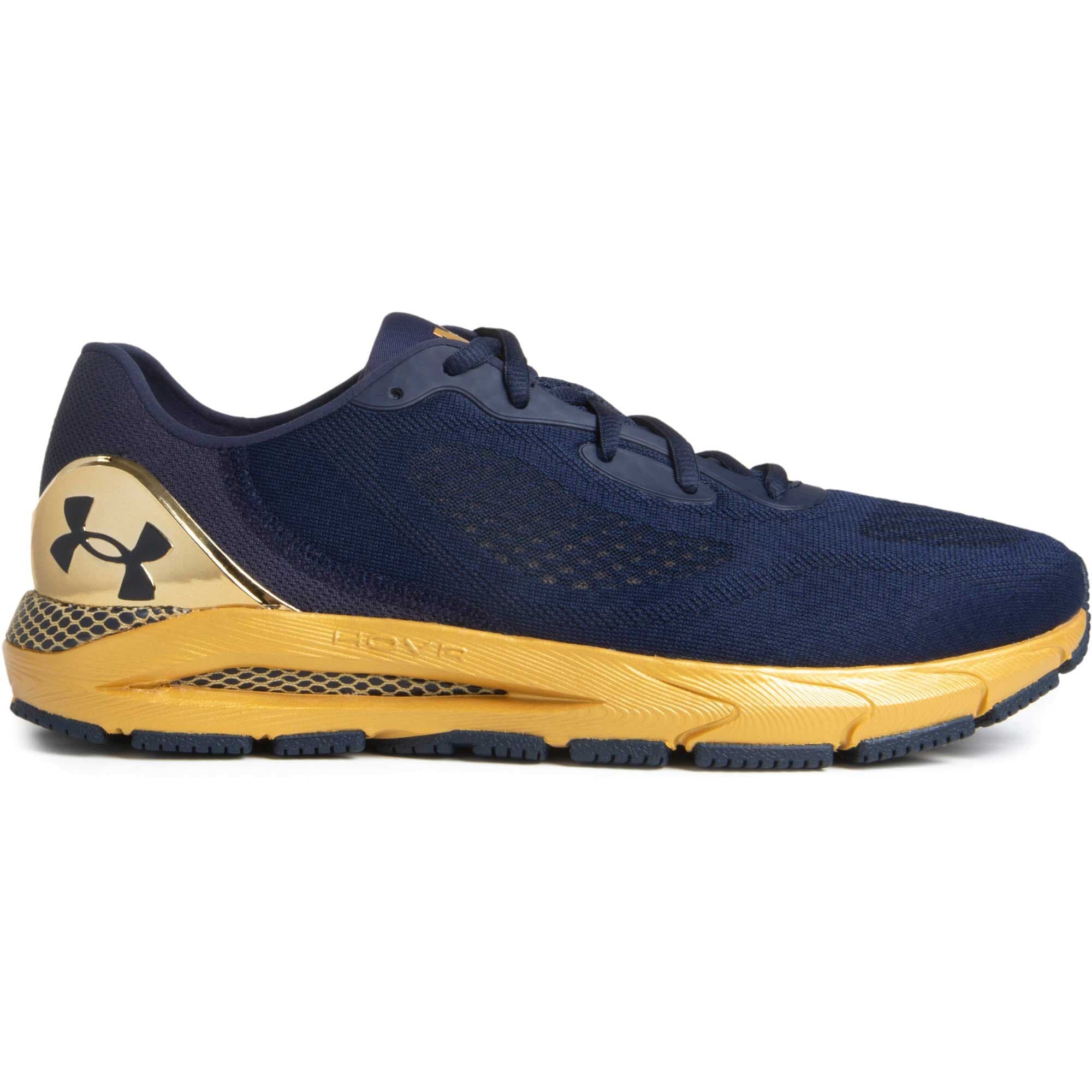 Ladies can opt for the UA HOVR Infinite 3 Running Shoe, designed with a women’s foot shape in mind. In addition to HOVR cushioning, these running shoes feature Notre Dame lace graphics and printed logos in shimmery gold.
