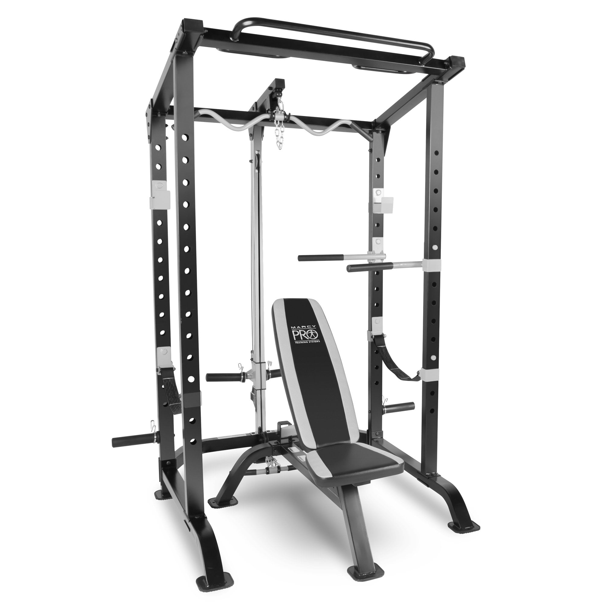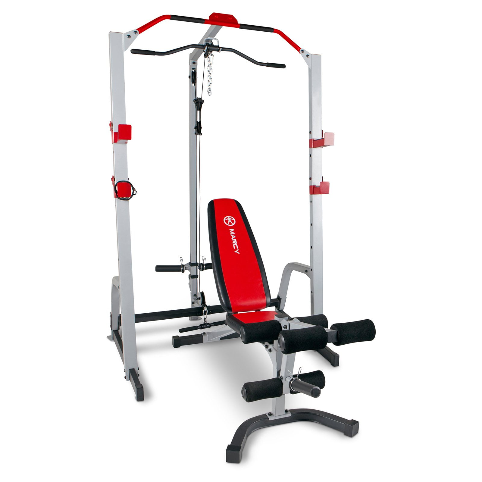 Want to add pulleys? Marcy sells an optional high/low pulley attachment for under $100, taking your training options to the next level. It conveniently bolts onto the 9010 power cage frame.