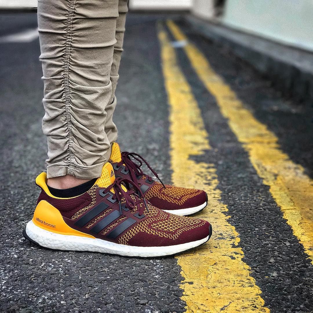 - ASU Ultra Boost – Maroon and gold Ultra Boost made for Arizona State. Primeknit upper with maroon heel counter. Retails around $180 originally.