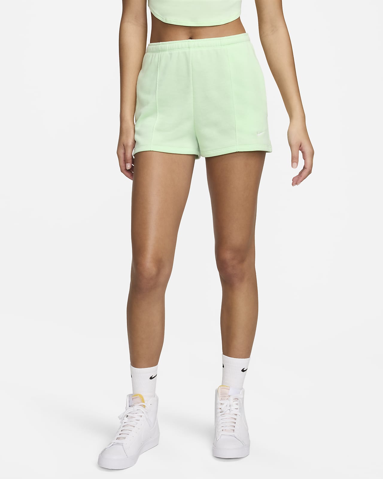 - Tonal Swoosh color blended into shorts hue
