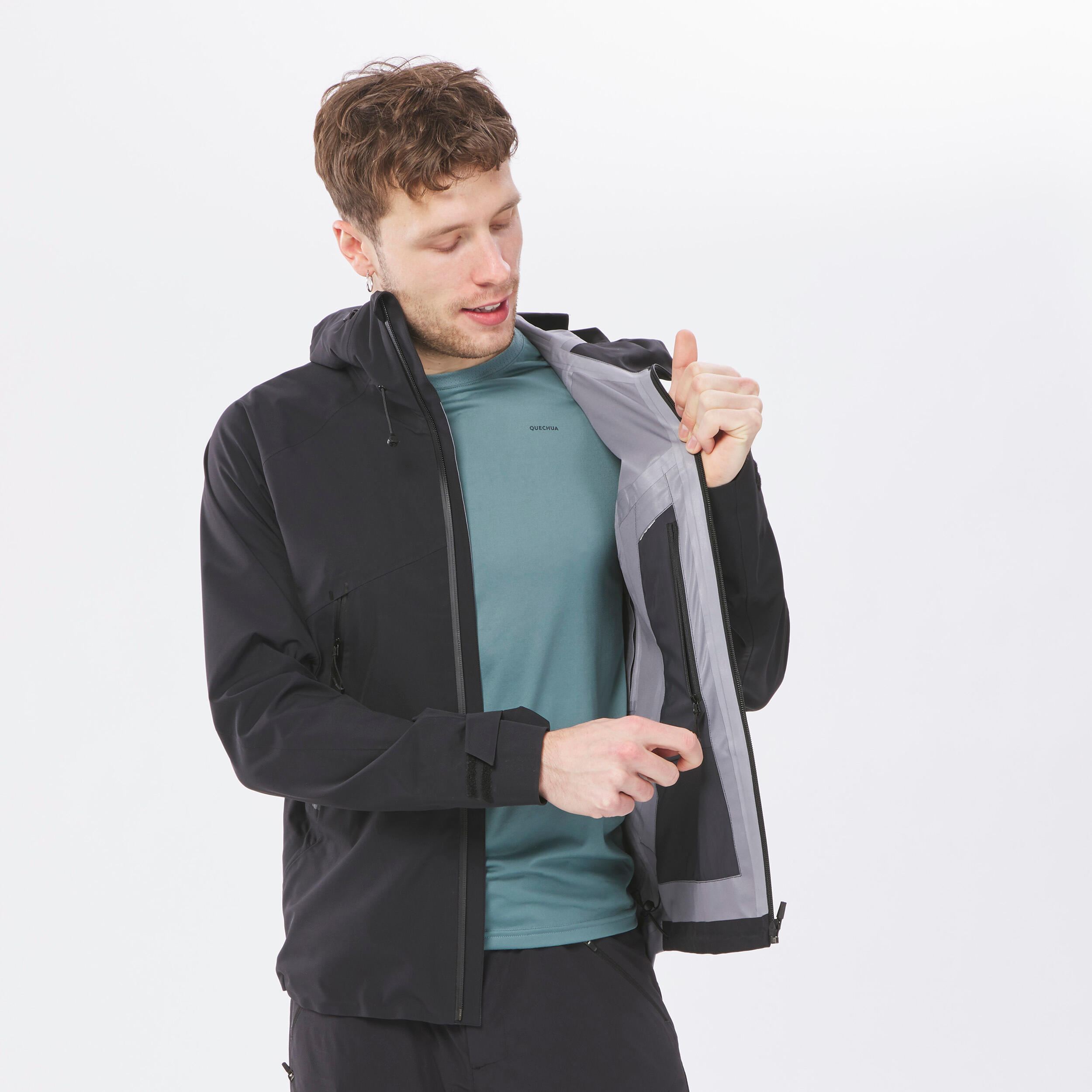 - Wear the jacket in heavy rain or simulated downpour conditions