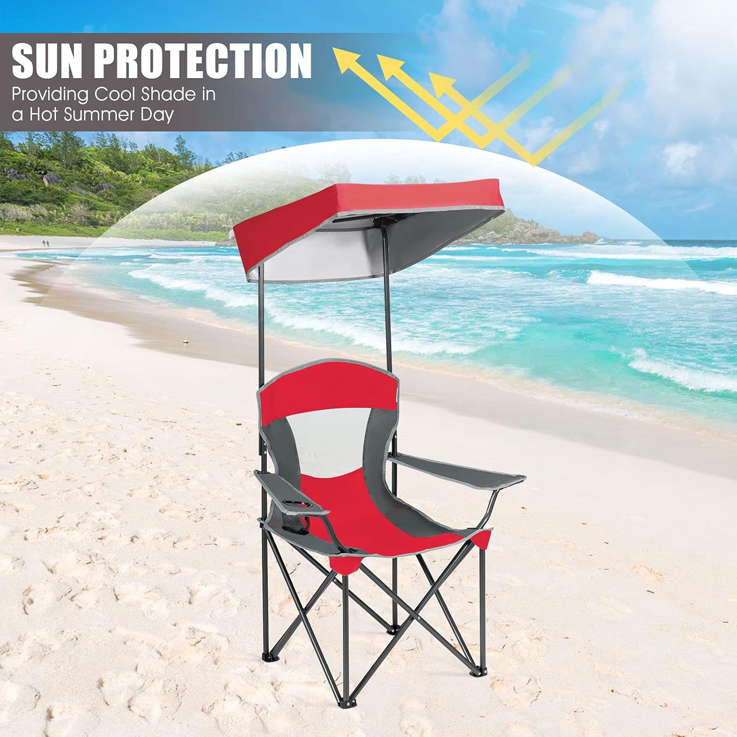 One of the most distinctive features of the Sport Brella Recliner is its built-in, adjustable canopy. This UPF 50+ overhead extension provides instant, customizable shade wherever you set up your chair. Unlike traditional beach umbrellas, the Sport Brella’s canopy moves with the chair, allowing you to block the sun from any angle as you recline.