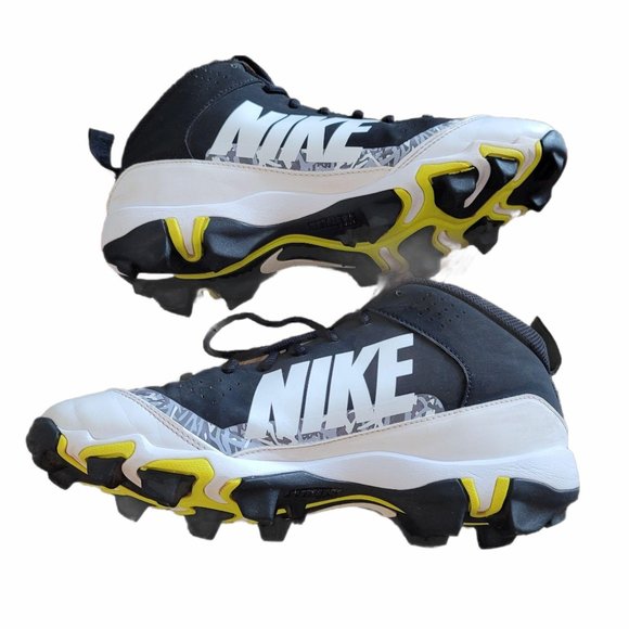 Look for areas the synthetic leather upper is wearing thin on Nike’s Swingman Zoom cleats in white and gold. Traction lugs wearing down flat also reduce stability and grip. Cushioning losing its bounce means it’s time for new cleats.
