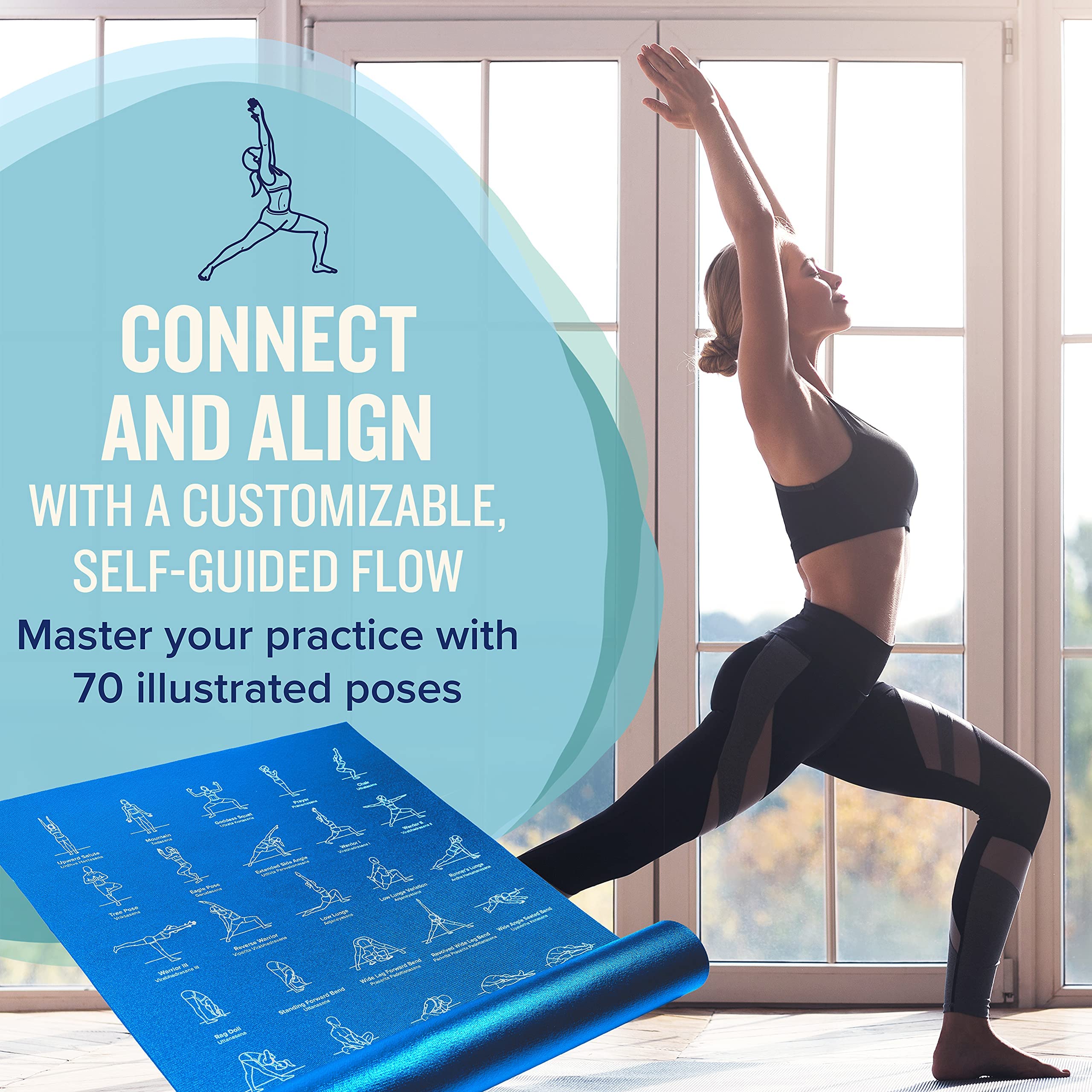 - 45-degree angle lines for poses like Warrior II
