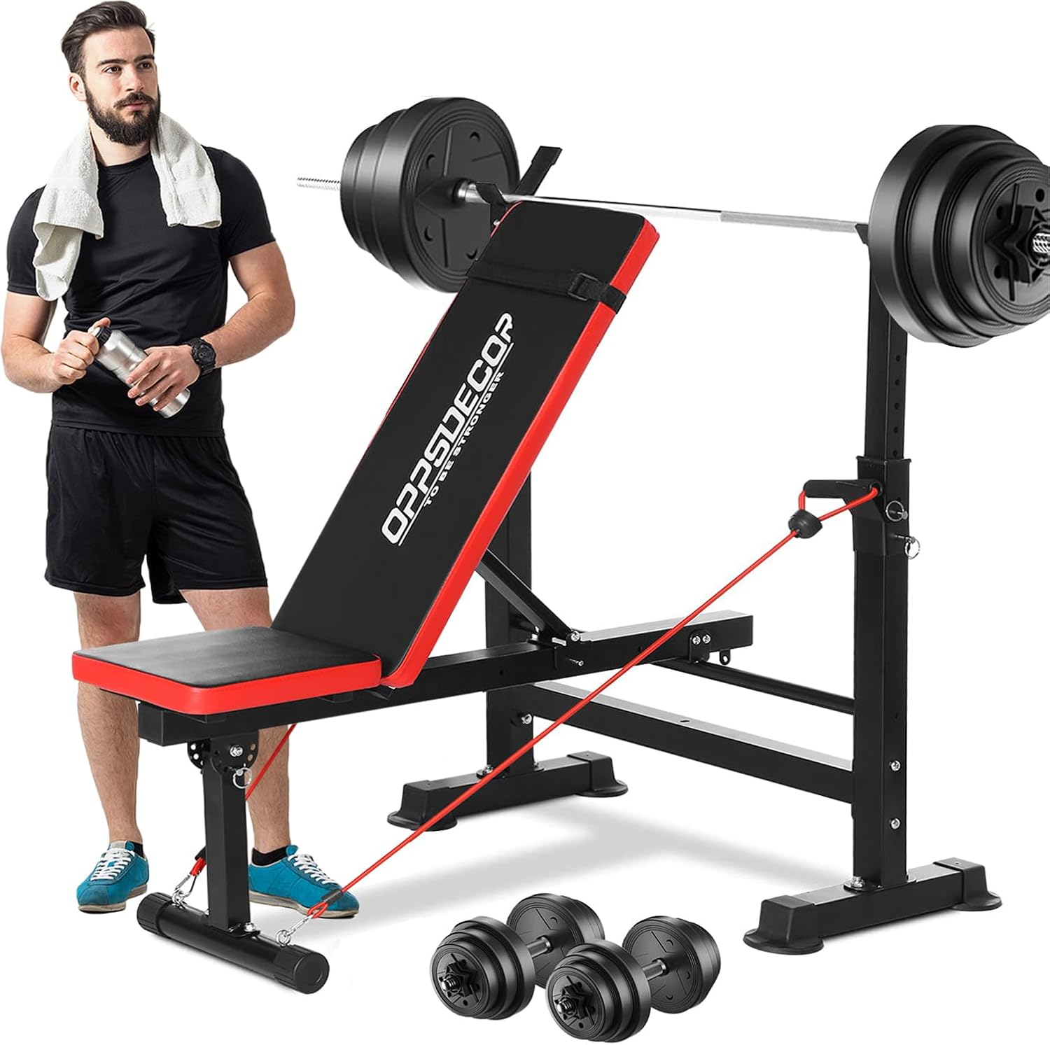 Having the bench and weights ready to go makes it easier to start strength training at home right out of the box.