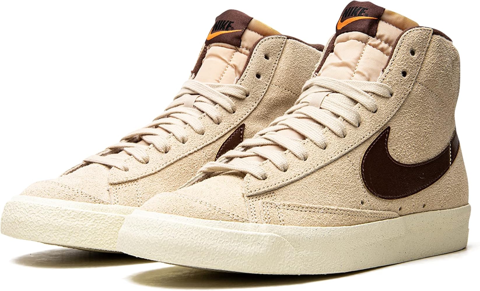 However, Nike updated the materials to give the Blazer Mid 77 Vintage a premium look and feel. The shoe utilizes a combination of canvas, leather, and suede across the upper. Canvas provides durability, while the leather and suede overlays add texture and style. The foam padded collar lining enhances comfort, and zig-zag stitching on the quarters nods to vintage construction.