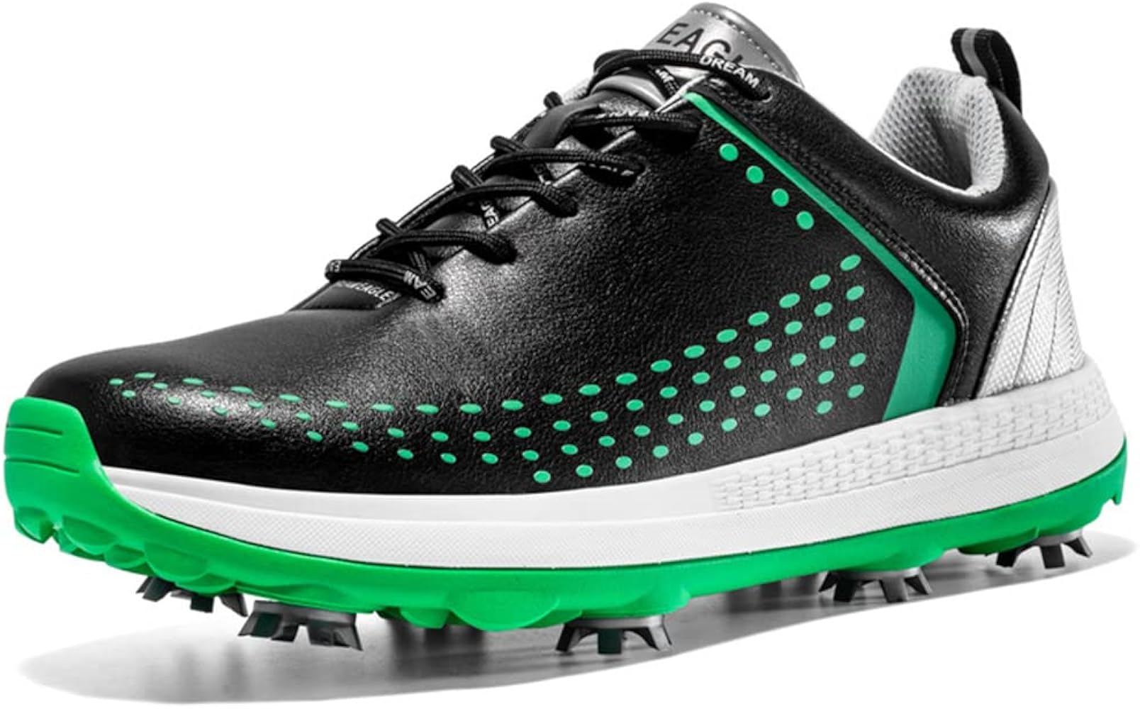 - Soft spikes for slip-free stability during swings and putts