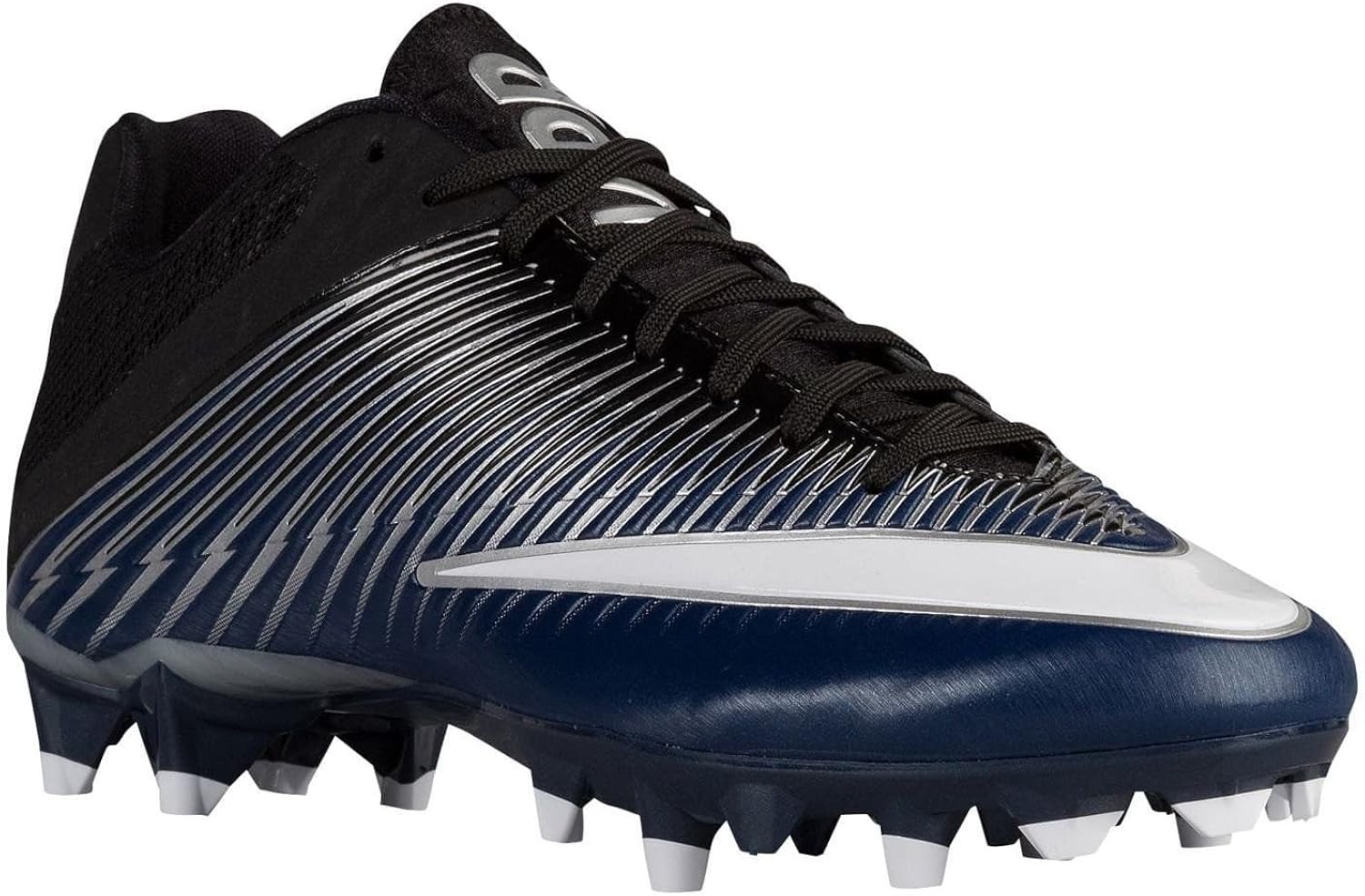 Optimizing speed and traction, the Nike Alpha Menace lacrosse cleats utilize tri-star studs at the toe for explosive acceleration during play.