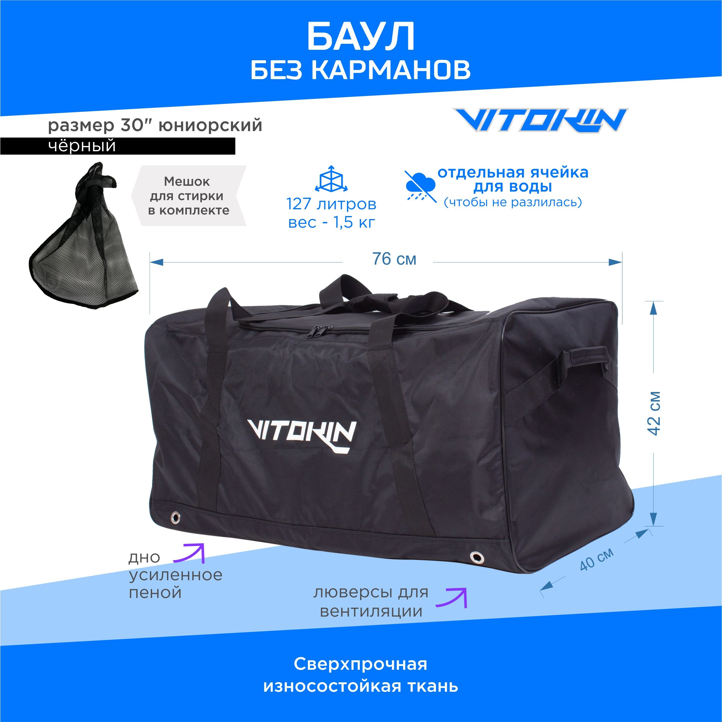 Durable zippers on main and side compartments allow you to separate gear however you like. For example, you may want to keep dirty hockey socks isolated in their own pocket away from clean apparel. Some athletes prefer to use side pockets for wet, dirty gear post-game.