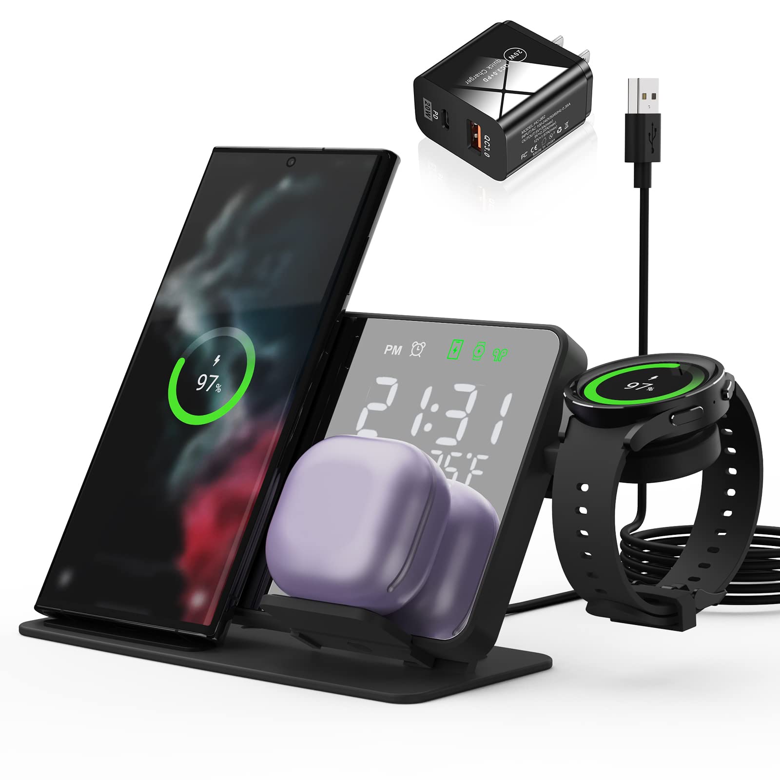13. AUONKY Digital Alarm Clock with Wireless Charger