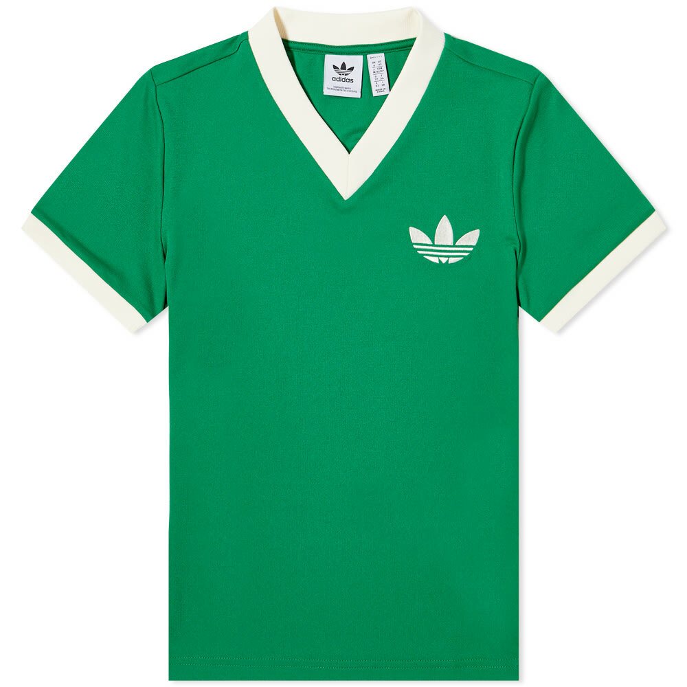 This is the OG adidas v neck that started it all. Made from soft cotton jersey with a slim athletic cut and ribbed collar. Signature three stripe detail on the sleeves. Runs true to size for a neat slim fit. Look is versatile enough for the gym or streets. Our top pick for an iconic adidas v neck.